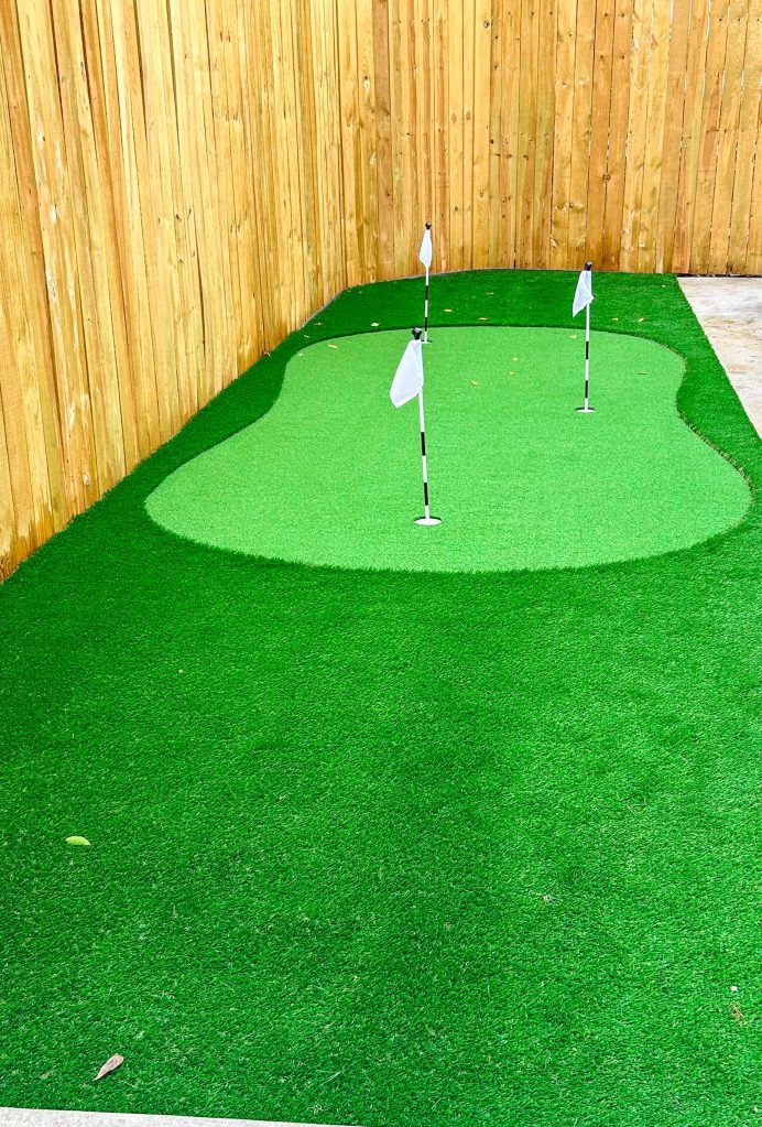 Bored of mowing the lawn? Turn your free time into something more fun and let the synthetic grass do the work for you with an amazing putting green.